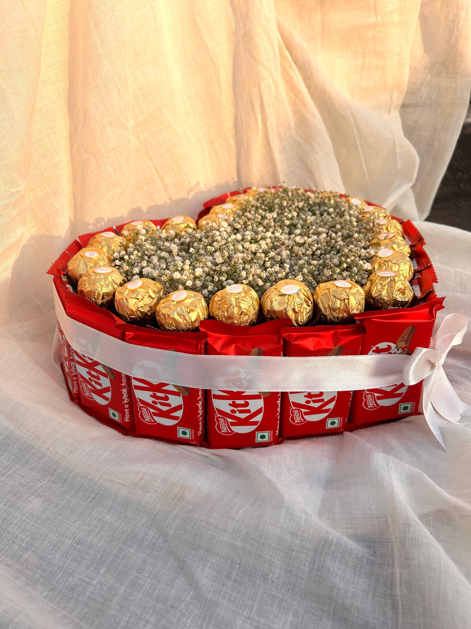 Indulge in a delightful blend of sweetness and love with our Heart chocolate bouquet! Perfectly crafted with Ferrero Rocher and KitKat, this bouquet is a treasure of rich flavors and heartfelt charm. Whether it’s a romantic surprise or a thoughtful gift, this sweet creation is sure to melt hearts and create unforgettable moments. Because love and chocolate are always a perfect match!